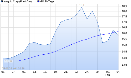 Mit dem Anstieg auf 16,30 EUR hat die Iamgold-Aktie am 03.02.2026 die 20-Tage-Linie nach oben gekreuzt.