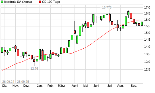 Mit dem Anstieg auf 15,92 EUR hat die Iberdrola-Aktie am 25.09.2025 die 100-Tage-Linie nach oben gekreuzt.