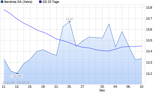 Mit dem Rücksetzer auf 13,27 EUR hat die Iberdrola-Aktie am 09.12.2024 die 20-Tage-Linie nach unten gekreuzt.