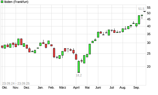 Mit dem Anstieg auf 51,50 EUR hat die Ibiden-Aktie (ISIN JP3148800000) am 22.09.2025 ein neues 12-Monats-Hoch erreicht und damit den Kurs vom 19.09.2025 eingestellt.