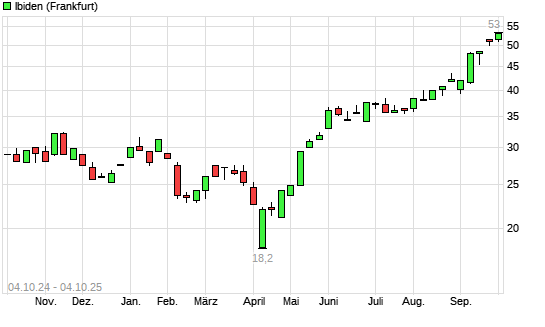 Mit dem Anstieg auf 53,00 EUR hat die Ibiden-Aktie (ISIN JP3148800000) am 03.10.2025 ein neues 12-Monats-Hoch erreicht und damit den Kurs vom 02.10.2025 eingestellt.