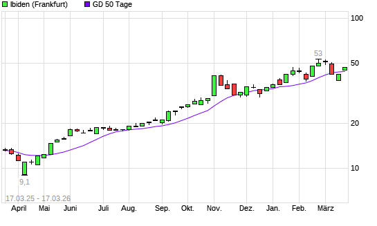 Mit dem Anstieg auf 45,40 EUR hat die Ibiden-Aktie am 16.03.2026 die 50-Tage-Linie nach oben gekreuzt.