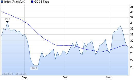 Mit dem Rücksetzer auf 29,20 EUR hat die Ibiden-Aktie am 14.11.2024 die 38-Tage-Linie nach unten gekreuzt.