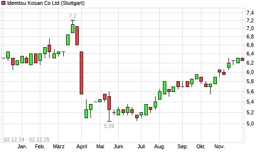 Mit dem Anstieg auf 6,50 EUR hat die Idemitsu Kosan-Aktie (ISIN JP3142500002) am 01.12.2025 ein neues 6-Monats-Hoch erreicht und damit den Kurs vom 17.11.2025 eingestellt.