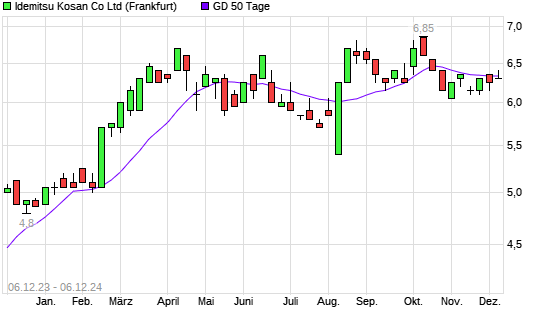 Mit dem Anstieg auf 6,40 EUR hat die Idemitsu Kosan-Aktie am 05.12.2024 die 50-Tage-Linie nach oben gekreuzt.