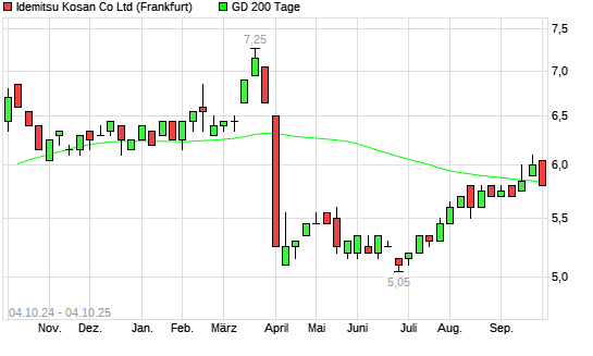 Mit dem Rücksetzer auf 5,80 EUR hat die Idemitsu Kosan-Aktie am 03.10.2025 die 200-Tage-Linie nach unten gekreuzt.