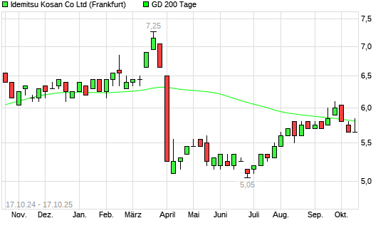 Mit dem Rücksetzer auf 5,70 EUR hat die Idemitsu Kosan-Aktie am 16.10.2025 die 200-Tage-Linie nach unten gekreuzt.