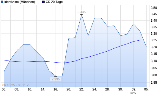 Mit dem Rücksetzer auf 3,17 EUR hat die Identiv-Aktie am 05.11.2025 die 20-Tage-Linie nach unten gekreuzt.