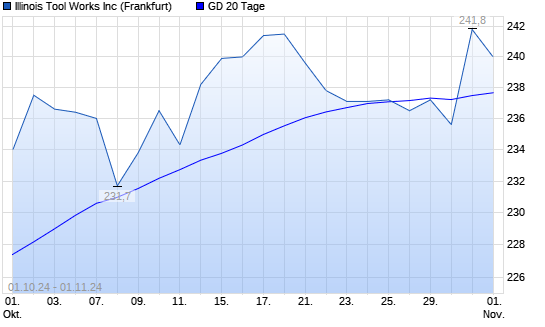 Mit dem Anstieg auf 241,80 EUR hat die Illinois Tool Works-Aktie am 31.10.2024 die 20-Tage-Linie nach oben gekreuzt.