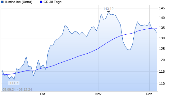 Mit dem Anstieg auf 134,70 EUR hat die Illumina-Aktie am 04.12.2024 die 38-Tage-Linie nach oben gekreuzt.