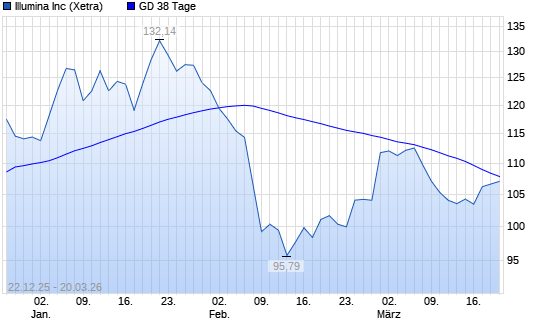Mit dem Anstieg auf 108,82 EUR hat die Illumina-Aktie am 19.03.2026 die 38-Tage-Linie nach oben gekreuzt.