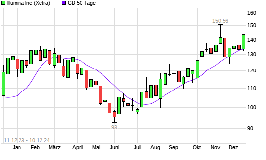 Mit dem Anstieg auf 140,26 EUR hat die Illumina-Aktie am 09.12.2024 die 50-Tage-Linie nach oben gekreuzt.