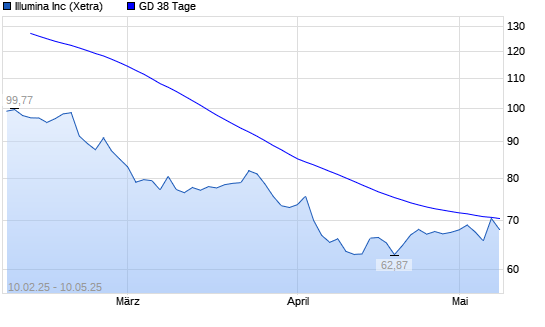 Mit dem Rücksetzer auf 67,25 EUR hat die Illumina-Aktie am 09.05.2025 die 38-Tage-Linie nach unten gekreuzt.