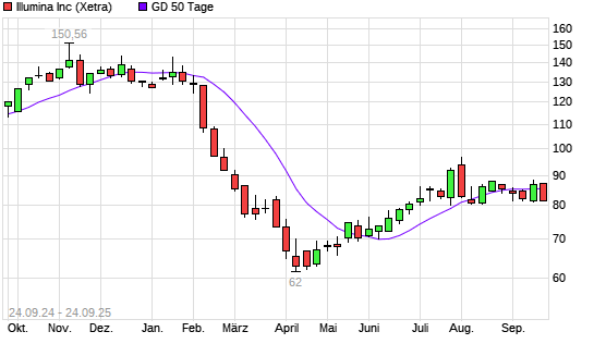 Mit dem Rücksetzer auf 83,66 EUR hat die Illumina-Aktie am 23.09.2025 die 50-Tage-Linie nach unten gekreuzt.