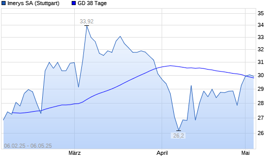 Mit dem Anstieg auf 29,88 EUR hat die Imerys-Aktie am 05.05.2025 die 38-Tage-Linie nach oben gekreuzt.