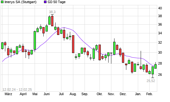 Mit dem Anstieg auf 27,50 EUR hat die Imerys-Aktie am 11.02.2025 die 50-Tage-Linie nach oben gekreuzt.