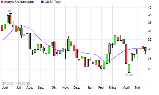 Mit dem Anstieg auf 30,80 EUR hat die Imerys-Aktie am 19.05.2025 die 50-Tage-Linie nach oben gekreuzt.