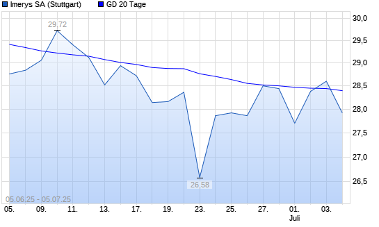 Mit dem Rücksetzer auf 28,26 EUR hat die Imerys-Aktie am 04.07.2025 die 20-Tage-Linie nach unten gekreuzt.
