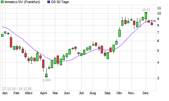 Mit dem Rücksetzer auf 8,44 EUR hat die Immatics-Aktie am 23.12.2025 die 50-Tage-Linie nach unten gekreuzt.