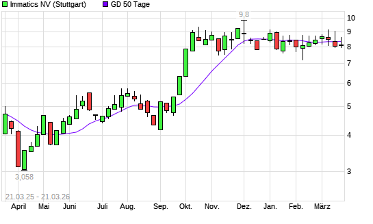 Mit dem Rücksetzer auf 8,11 EUR hat die Immatics-Aktie am 20.03.2026 die 50-Tage-Linie nach unten gekreuzt.