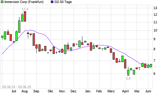 Mit dem Anstieg auf 6,75 EUR hat die Immersion-Aktie am 04.06.2025 die 50-Tage-Linie nach oben gekreuzt.