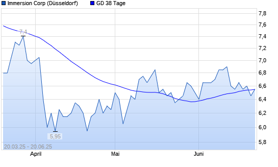 Mit dem Rücksetzer auf 6,55 EUR hat die Immersion-Aktie am 19.06.2025 die 38-Tage-Linie nach unten gekreuzt.