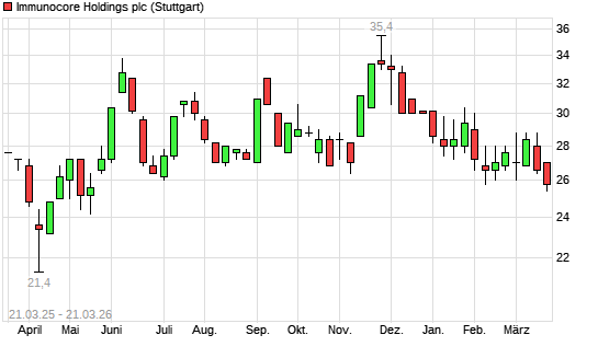 Mit dem Rücksetzer auf 25,20 EUR hat die Immunocore Holdings plc-Aktie (ISIN US45258D1054) am 20.03.2026 ein neues 6-Monats-Tief erreicht und damit den Kurs vom 19.03.2026 eingestellt.