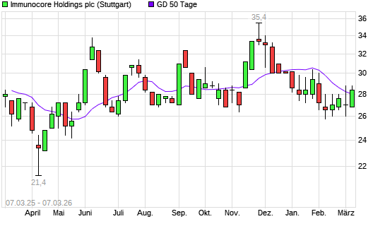 Mit dem Anstieg auf 28,40 EUR hat die Immunocore Holdings plc-Aktie am 06.03.2026 die 50-Tage-Linie nach oben gekreuzt.