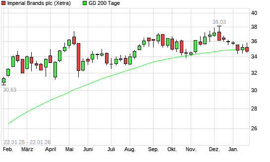 Mit dem Rücksetzer auf 33,72 EUR hat die Imperial Brands-Aktie am 21.01.2026 die 200-Tage-Linie nach unten gekreuzt.