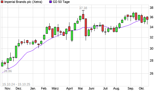 Mit dem Rücksetzer auf 35,09 EUR hat die Imperial Brands-Aktie am 14.10.2025 die 50-Tage-Linie nach unten gekreuzt.