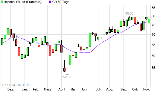 Mit dem Anstieg auf 77,04 EUR hat die Imperial Oil-Aktie am 06.11.2025 die 50-Tage-Linie nach oben gekreuzt.