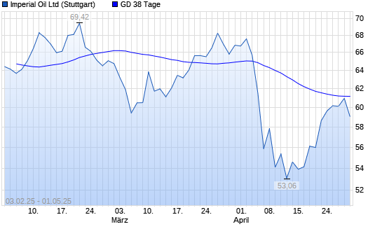Mit dem Rücksetzer auf 60,50 EUR hat die Imperial Oil-Aktie am 30.04.2025 die 38-Tage-Linie nach unten gekreuzt.