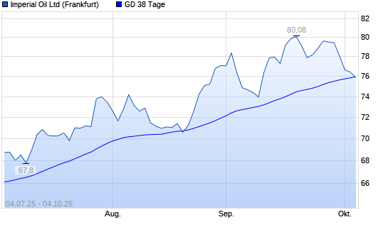 Mit dem Rücksetzer auf 75,88 EUR hat die Imperial Oil-Aktie am 03.10.2025 die 38-Tage-Linie nach unten gekreuzt.