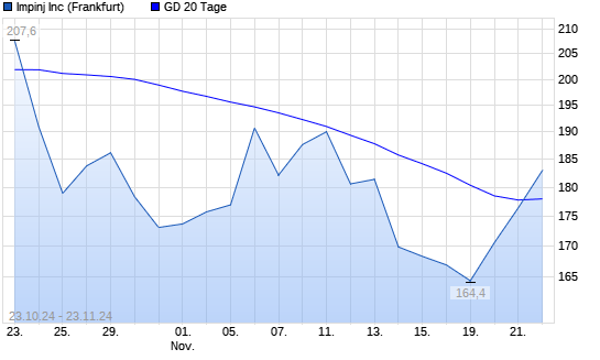 Mit dem Anstieg auf 183,00 EUR hat die Impinj-Aktie am 22.11.2024 die 20-Tage-Linie nach oben gekreuzt.