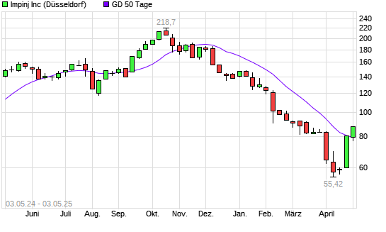 Mit dem Anstieg auf 85,24 EUR hat die Impinj-Aktie am 02.05.2025 die 50-Tage-Linie nach oben gekreuzt.