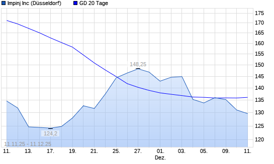 Mit dem Rücksetzer auf 132,60 EUR hat die Impinj-Aktie am 10.12.2025 die 20-Tage-Linie nach unten gekreuzt.