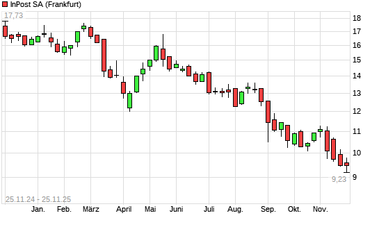 Mit dem Rücksetzer auf 9,38 EUR hat die InPost-Aktie (ISIN LU2290522684) am 24.11.2025 ein neues 12-Monats-Tief erreicht und damit den Kurs vom 21.11.2025 eingestellt.