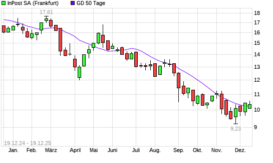Mit dem Anstieg auf 10,50 EUR hat die InPost-Aktie am 18.12.2025 die 50-Tage-Linie nach oben gekreuzt.