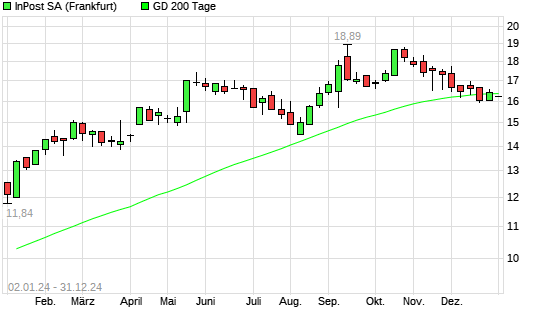 Mit dem Rücksetzer auf 16,22 EUR hat die InPost-Aktie am 30.12.2024 die 200-Tage-Linie nach unten gekreuzt.