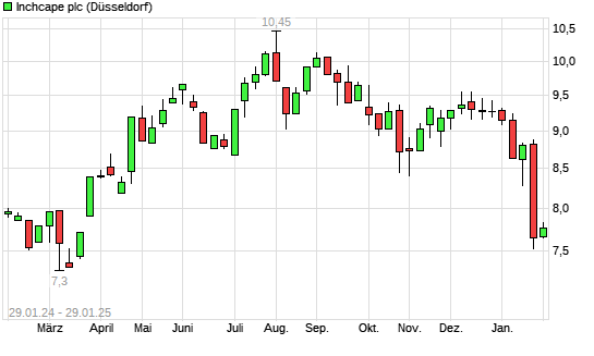 Mit dem Rücksetzer auf 7,74 EUR hat die Inchcape-Aktie (ISIN GB00B61TVQ02) am 28.01.2025 ein neues 6-Monats-Tief erreicht und damit den Kurs vom 24.01.2025 eingestellt.