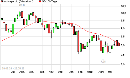 Mit dem Anstieg auf 8,20 EUR hat die Inchcape-Aktie am 27.05.2025 die 100-Tage-Linie nach oben gekreuzt.