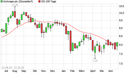 Mit dem Anstieg auf 8,15 EUR hat die Inchcape-Aktie am 20.06.2025 die 100-Tage-Linie nach oben gekreuzt.