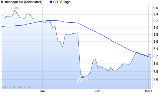 Mit dem Anstieg auf 8,27 EUR hat die Inchcape-Aktie am 03.03.2025 die 38-Tage-Linie nach oben gekreuzt.