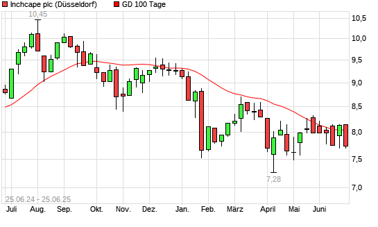 Mit dem Rücksetzer auf 7,93 EUR hat die Inchcape-Aktie am 24.06.2025 die 100-Tage-Linie nach unten gekreuzt.