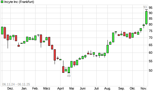 Mit dem Anstieg auf 92,36 EUR hat die Incyte-Aktie (ISIN US45337C1027) am 05.11.2025 ein neues 5-Jahres-Hoch erreicht und damit den Kurs vom 04.11.2025 eingestellt.
