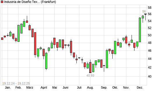 Mit dem Anstieg auf 55,86 EUR hat die Inditex-Aktie (ISIN ES0148396007) am 18.12.2025 ein neues All-Time-High erreicht und damit den Kurs vom 05.12.2024 eingestellt.