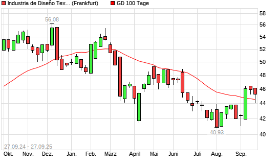 Mit dem Anstieg auf 45,27 EUR hat die Inditex-Aktie am 26.09.2025 die 100-Tage-Linie nach oben gekreuzt.