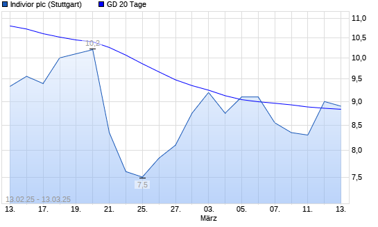 Mit dem Anstieg auf 8,95 EUR hat die Indivior-Aktie am 12.03.2025 die 20-Tage-Linie nach oben gekreuzt.