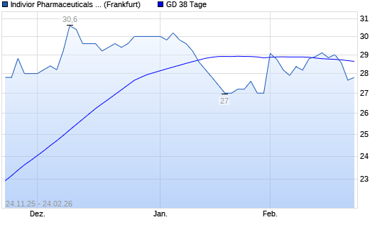 Mit dem Rücksetzer auf 27,66 EUR hat die Indivior-Aktie am 23.02.2026 die 38-Tage-Linie nach unten gekreuzt.