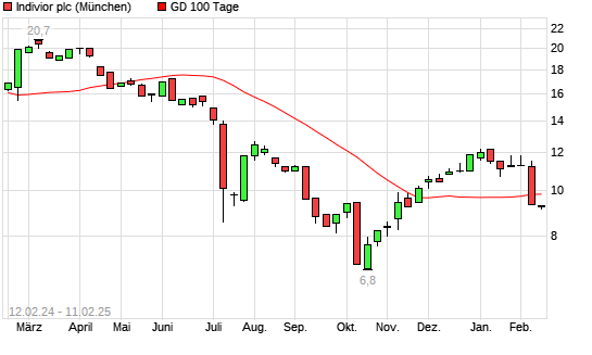 Mit dem Rücksetzer auf 9,25 EUR hat die Indivior-Aktie am 10.02.2025 die 100-Tage-Linie nach unten gekreuzt.Die Indivior-Aktie befindet sich seit dem 03.02.2025 im langfristigen Abwärtstrend ...weiterlesen